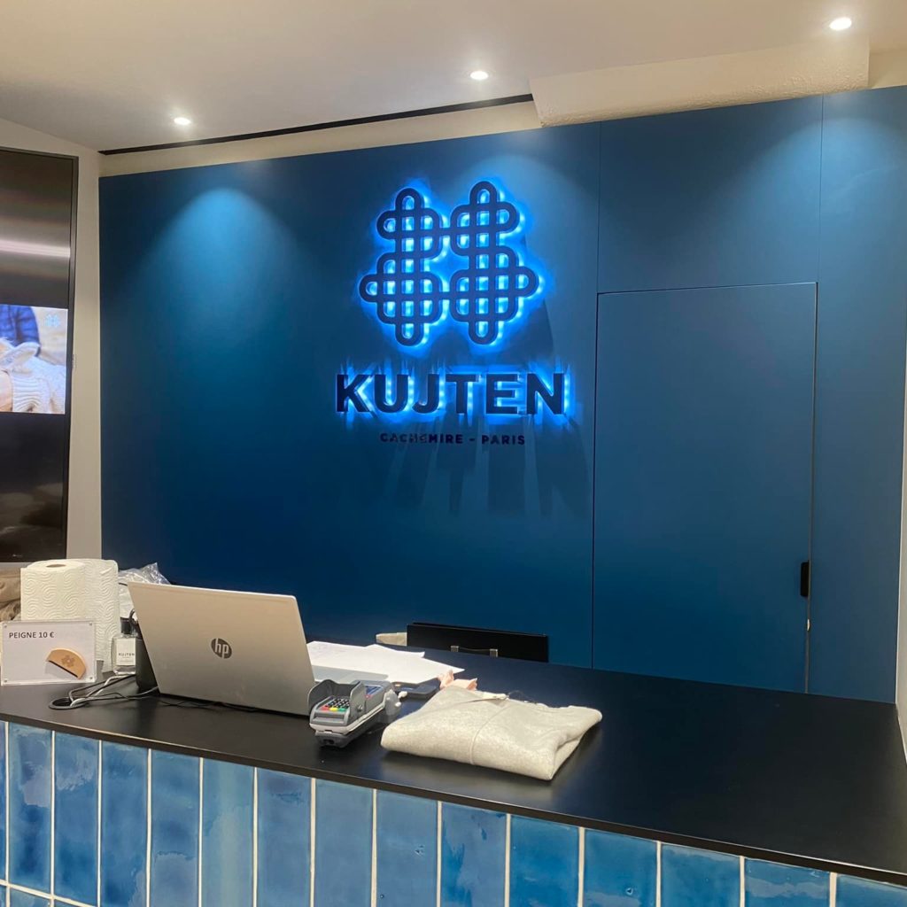 Enseigne lumineuse,réalisée par XL Enseignes Lux, composée de lettres boîtiers face plexi et d’un caisson lumineux face toile tendue.